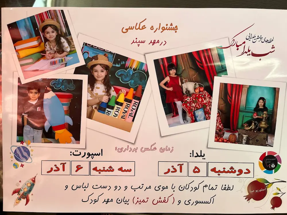 عکاسی با دکور شب یلدا در مهد سپند واقع در فاز 4 مهرشهر کرج